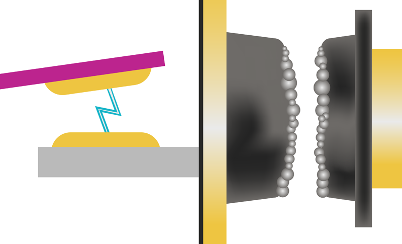 A major stress factor for HVAC relays is motor inrush current. Compressors, condenser fans, and indoor blowers can demand five to eight times their full-load current at startup. Relay contacts must close under these surge conditions, which generate arcs across partially closed contacts. These arcs erode surfaces, increase resistance, and accelerate heat buildup, all of which shorten service life (Figure 2). Contact bounce further worsens arcing intensity and wear. To mitigate these effects, robust contact materials—such as silver tin oxide—are commonly specified for HVAC relays, given their resistance to welding and erosion under inductive loads. Same Sky offers a variety of power relays at different switching voltages with silver tin oxide for HVAC and other applications that expect these unfavorable conditions.