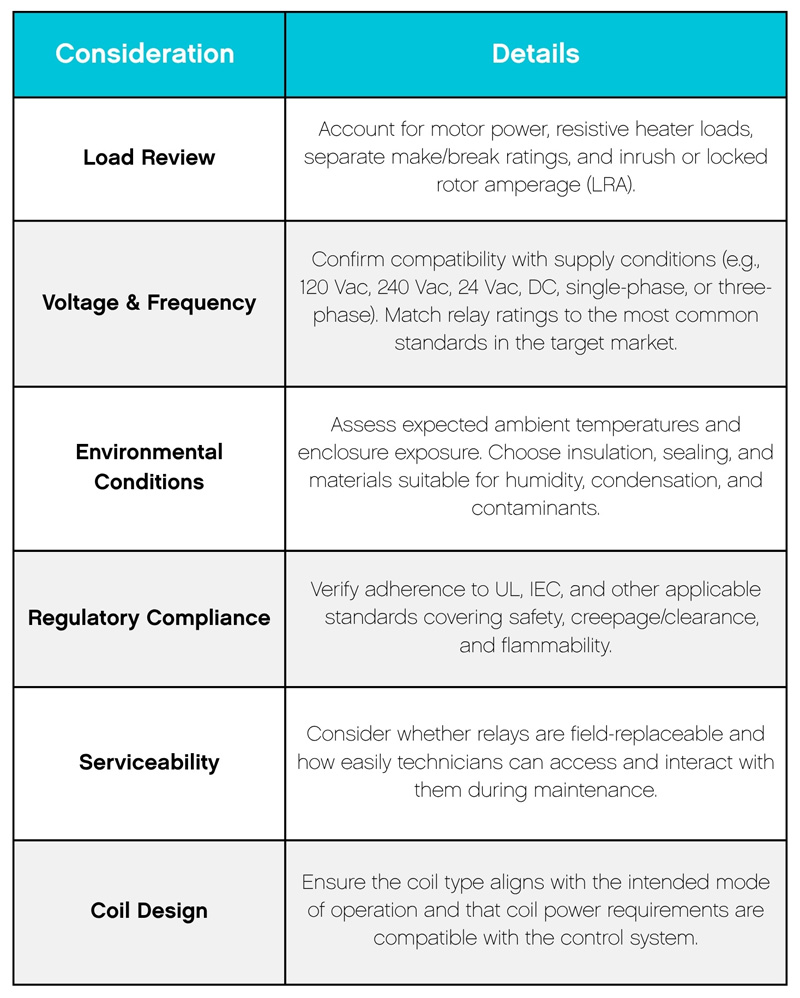 While HVAC relay specifications can be complex, a clear checklist provides a practical framework for guiding the design and selection process.
