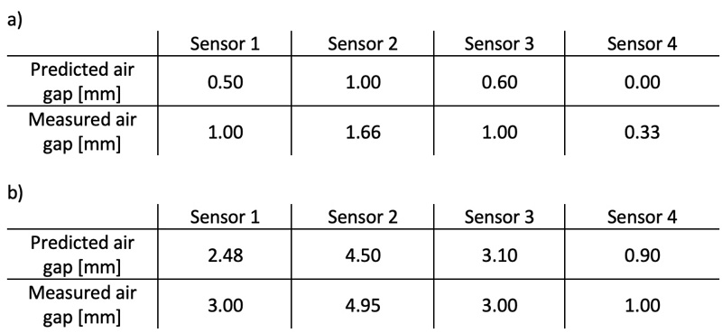 Table 1: Inferred air gap from 3D magnetic field data for the insertion of a 1 mm a) and a 3 mm step spacer