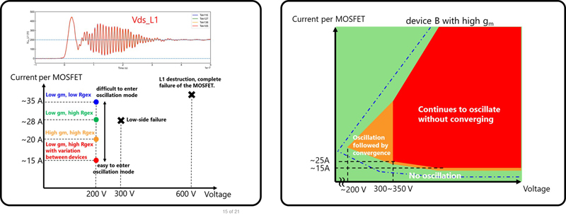 By observing how current, voltage, device mismatches, gate resistance, and transconductance (gm) influence behavior, a complete picture emerges of the mechanisms that drive instability in parallel SiC MOSFETs.