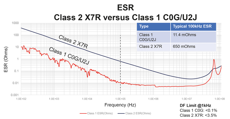Figure 2: ESR Comparison Between Class II X7R and Class I C0G/U2J