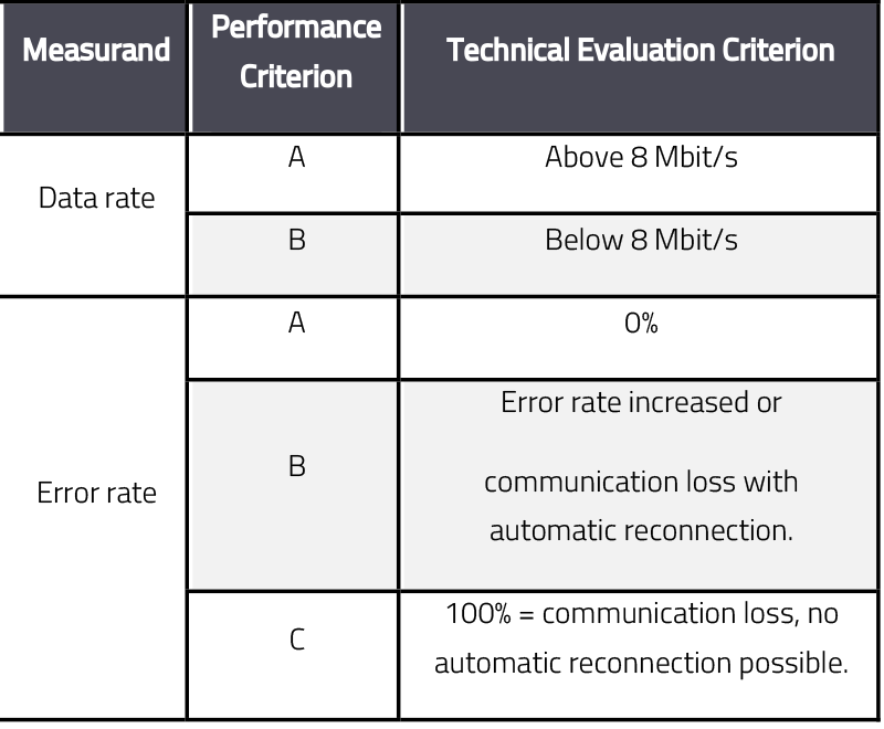 During the immunity tests, the performance of the reference design is checked against the criteria in Table 1.