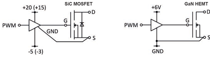 SiC MOSFET and GaN HEMT circuit diagrams