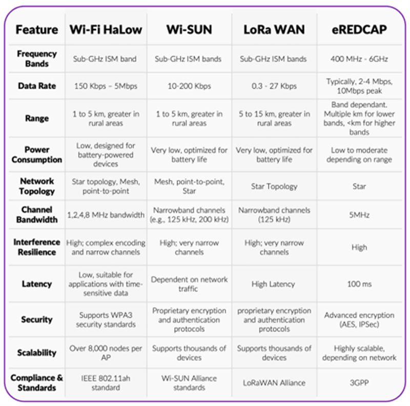 Another often overlooked benefit of Wi-Fi HaLow is its use of license-free spectrum. This eliminates costly carrier contracts and allows utility operators to control their own network infrastructure. Unlike LTE or 5G networks, which operate on licensed spectrum and require ongoing fees and third-party agreements, Wi-Fi HaLow networks can be owned, operated, and maintained internally, reducing long-term costs and enabling greater deployment flexibility.