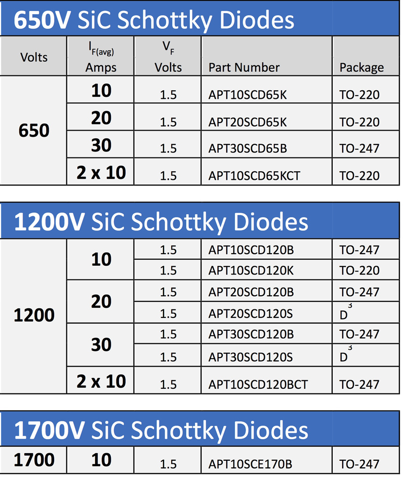 Microsemi’s SiC Schottky diodes have been manufactured at Microsemi’s SiC wafer fabrication facility in Bend, Oregon since 2007 and they provide high reliability for two fundamental reasons. Some SiC Schottky diodes often apply the passivation layer during the post fabrication phase, whereas Microsemi applies thin-film passivation during the wafer fab process and uses a superior thin-film passivation chemical, which leads to higher reliability (see Table 1).