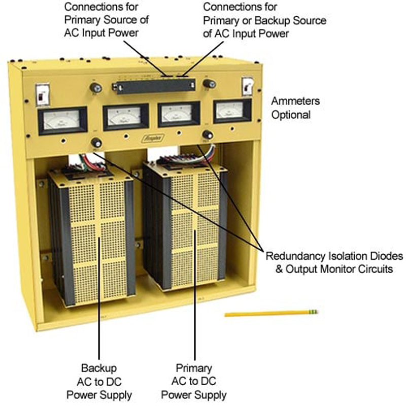 The “backup” supply continues to operate the system while the defective “primary” supply is removed and repaired or replaced. The assembly layout, therefore, must permit easy and safe removal of any supply module while other modules are operating.