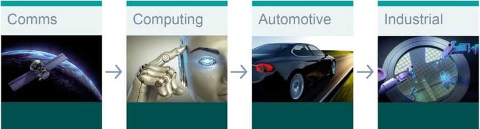 Communication systems were followed by computing. The push for 48V power distribution in data centers by Google and the Open Compute Project (OCP) began gaining significant attention circa 2016.