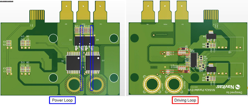Figure 2: Example PCB layout for parallel operation highlighting the power and driving loops