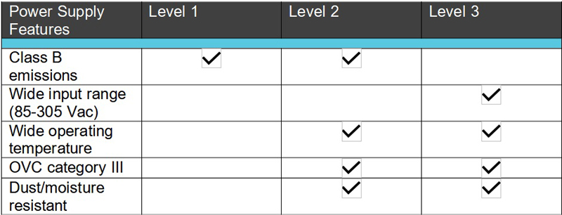 Table 2: Power supply features important to EVSE levels