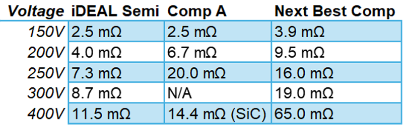 Provisional data for the upcoming 400V SuperQ devices indicates an RDS(on) of approximately 11.5mΩ, compared with approximately 65mΩ for the best available silicon alternative.