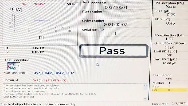 Especially within the first few years of operation, insulation defects occur disproportionately. Therefore, Pulse performs a partial discharge test after production as a type and acceptance test to detect any quality problems that may have arisen during production.