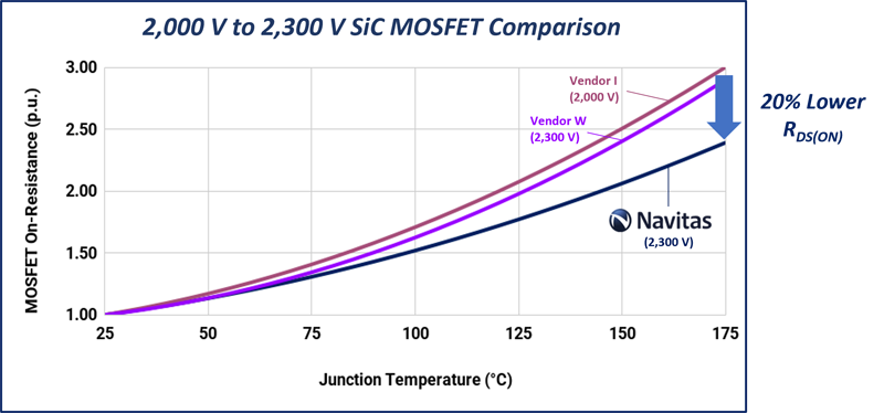 By strategically incorporating shallow trenches into a fundamentally planar gate structure, Navitas delivers a "no-compromise" solution. This innovative approach ensures high-yield manufacturing and enhanced thermal dissipation with the simultaneous optimization of the electric field distribution to achieve the lowest RDS,ON at high temperatures, reduced switching losses, and superior gate oxide reliability.