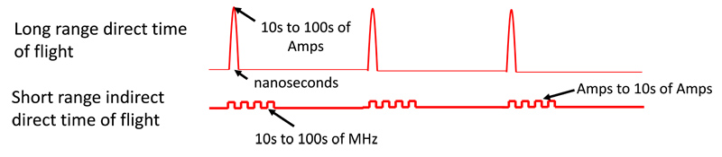 Figure 1: Illustration of how direct time-of-flight (DToF) and indirect time-of-flight (IToF) work